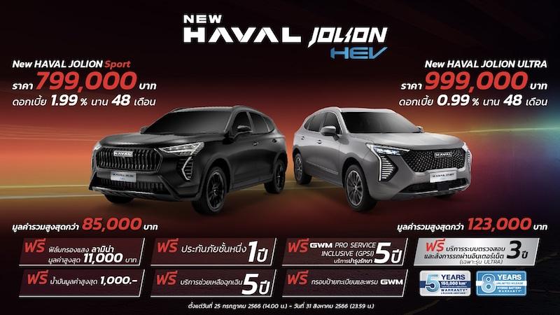 ทั้งนี้ New HAVAL JOLION Hybrid SUV จะมีรถยนต์ทั้งสิ้น 2 รุ่นย่อยให้แฟนๆ ชาวไทยได้จับจอง ได้แก่ รุ่น Sport ในราคา 799,000 บาท และรุ่น ULTRA ในราคา 999,000 บาท โดยรถยนต์ทั้งสองรุ่นย่อย ยังมาพร้อมกับข้อเสนอสุดพิเศษต่าง ๆ มากมายภายใต้แคมเปญ PREMIERE DEAL ได้แก่