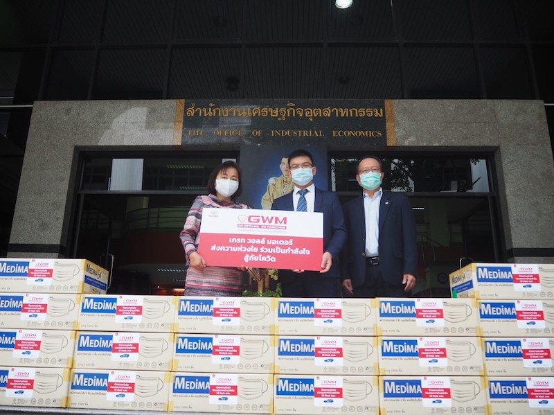 เกรท วอลล์ มอเตอร์ ยังคงเดินหน้าสานต่อกิจกรรมอาสาสมัครและส่งมอบความช่วยเหลือให้กับคนไทยอย่างต่อเนื่อง ภายใต้โครงการ “GO WITH ME, GO TOGETHER รวมหัวใจพร้อมก้าวผ่านทุกวิกฤตไปด้วยกัน” โดยล่าสุด คณะผู้บริหาร นำโดย มร. ไมเคิล ฉง ผู้ช่วยประธาน เกรท วอลล์ มอเตอร์ ภูมิภาคอาเซียนและประเทศไทย และนายครรชิต ไชยสุโพธิ์ รองประธาน กิจการองค์กรและรัฐกิจสัมพันธ์ เกรท วอลล์ มอเตอร์ ภูมิภาคอาเซียนและประเทศไทย พร้อมทีมงาน ได้ทยอยส่งมอบหน้ากากอนามัยให้แก่องค์กรภาครัฐและโรงพยาบาลรวมกว่า 29 แห่งทั้งในเขตพื้นที่กรุงเทพมหานครและจังหวัดระยอง ซึ่งได้แก่ สำนักงานมาตรฐานผลิตภัณฑ์อุตสาหกรรม (สมอ.) สถาบันยานยนต์ กรมการขนส่งทางบก สำนักงานคณะกรรมการส่งเสริมการลงทุน การนิคมอุตสาหกรรมแห่งประเทศไทย กรมพัฒนาธุรกิจการค้า สํานักงานคณะกรรมการคุ้มครองผู้บริโภค กรมสรรพสามิต กรมศุลกากร สำนักงานเศรษฐกิจอุตสาหกรรม การไฟฟ้านครหลวง การไฟฟ้าส่วนภูมิภาค สำนักงานคณะกรรมการกำกับกิจการพลังงาน (สำนักงาน กกพ.) โรงพยาบาลจุฬาลงกรณ์ สภากาชาดไทย กองบังคับการตรวจคนเข้าเมือง 3 และในส่วนพื้นที่จังหวัดระยอง ได้แก่ จัดหางานจังหวัดระยอง ตม.มาบตาพุด กรมสวัสดิการคุ้มครองแรงงาน ระยอง การนิคมอุตสาหกรรม ระยอง อำเภอปลวกแดง ประกันสังคม ปลวกแดง โรงพยาบาลปลวกแดง กรมศุลกาการ ระยอง มาบตาพุด สำนักงานสรรพสามิต ระยอง 2 สถานีตำรวจปลวกแดง สถานีตำรวจบ่อวิน ตำรวจภูธรภาค 2