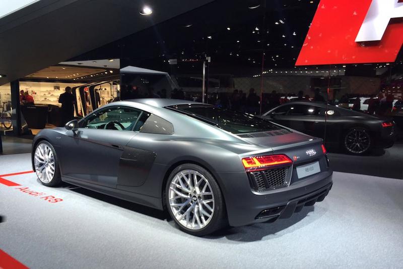 ตามมาด้วยค่าย ออดี้ โดยนำเสนอในบู๊ธ 4 รุ่น ออดี้ อาร์8, ออดี้ อาร์เอส3, ออดี้ โพรล็อค อะวานท์ และ ออดี้ คิว7 อี-ทรอน รถไฟฟ้าที่มาเป็นคู่ต่อสู้ของ บีเอ็มดับบลิว ไอ8 โดยตัวซูเปอร์คาร์ คือ อาร์8 ใช้เครื่องยนต์ วี10 602 แรงม้า คลัทช์คู่ วางกลาง และขอยืมเกียร์มาจาก ลัมบอร์กินี่ ฮูราคาน เอส โทรนิค ทำความเร็ว 0-100 ได้ภายใน 3.2 วินาที ความเร็วสูงสุด 330 กม./ชม. ใช้โครงสร้างตัวรถจากอลูมิเนียม และคาร์บอน ไฟเบอร์ นำ้หนักตัวน้อยกว่ารุ่นเดิม 50 กก. แต่ความแข็งแรงเพิ่มขึ้น 40%