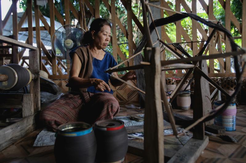 จากนั้นจึงไปแวะเวียนเรียนรู้ศิลปหัตถกรรมกลุ่มต่าง ๆ อาทิ กลุ่มผ้าฝ้ายทอมือที่สืบสานภูมิปัญญามากว่า 100 ปี ได้เรียนรู้ขั้นตอนการทอผ้า ซึ่งมีทั้งหมด 12 ขั้นตอน กลุ่มงานจักสานที่ทำจากไม้ไผ่แบบดั้งเดิมที่หาชมได้ยาก มีทั้ง ตาแหลวมงคล ตุงใจ ฯลฯ