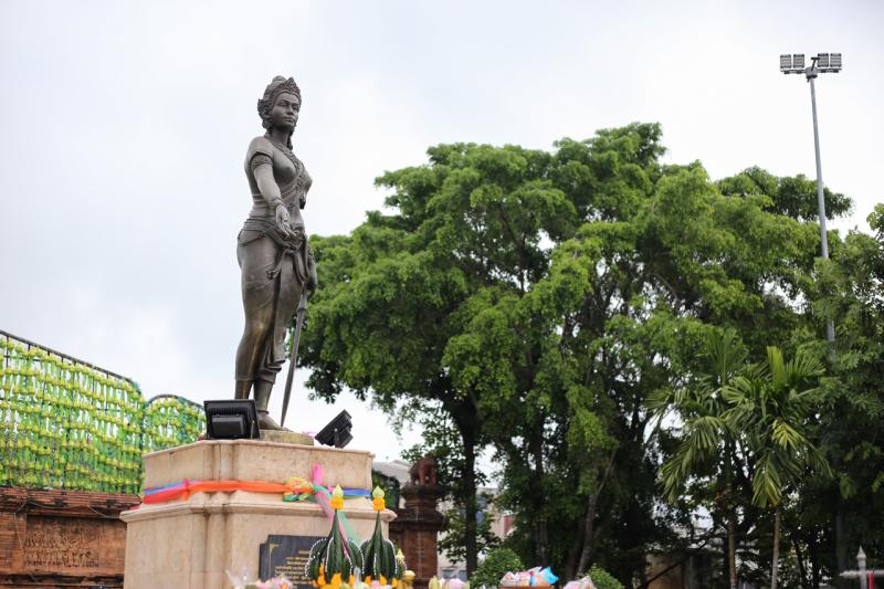 จากนั้นได้แวะสักการะอนุสาวรีย์พระนางจามเทวี ซึ่งพระนางเป็นปราชญ์ที่มีคุณธรรม ความสามารถ และกล้าหาญ ได้นำพุทธศาสนา และศิลปวัฒนธรรมมาเผยแพร่ในดินแดนหริภุญชัยนี้จนรุ่งเรือง ต่อด้วยกิจกรรมไหว้พระทำบุญ ณ วัดจามเทวี หรือที่ชาวบ้านเรียกกันว่า วัดกู่กุด ซึ่งตามหลักฐานจากศิลาจารึกที่พบเชื่อว่า พระราชโอรสของพระนางจามเทวีโปรดให้สร้างวัดนี้ขึ้นเพื่อถวายพระเพลิงพระนาง และบรรจุอัฐิในพระเจดีย์สุวรรณจังโกฏ เจดีย์เหลี่ยมมียอดหุ้มด้วยทองตามแบบพุทธคยาในประเทศอินเดีย หากแต่ต่อมาสมัยใดไม่ทราบแน่ชัด ยอดพระเจดีย์ได้หักหายไป ชาวบ้านจึงเรียกว่ากู่กุดพระเจดีย์ ซึ่งถือเป็นแบบสถาปัตยกรรมที่มีความสําคัญในศิลปกรรมสมัยหริภุญชัย