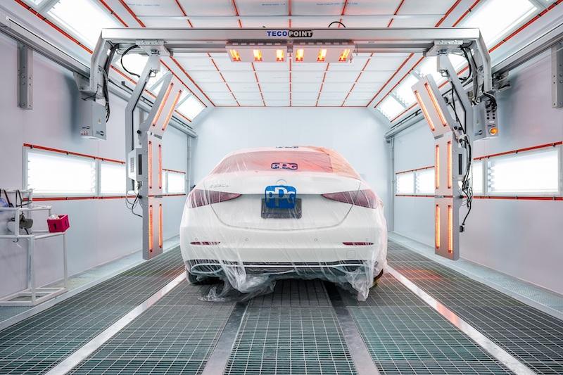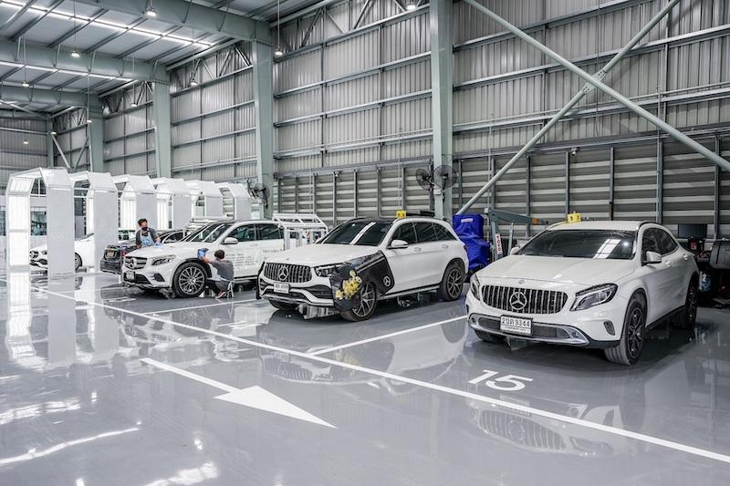 ภายในห้องพ่นอบสีที่มีอุณหภูมิคงที่ พร้อมเลือกผลิตภัณฑ์สีน้ำ คุณภาพมาตรฐานระดับนานาชาติ และเป็นมิตรกับสิ่งแวดล้อม รองรับงานซ่อมสี และตัวถัง เดือนละ 150 คัน ให้บริการทั้งการซ่อมงานหนักและงานเบา พร้อมรับงานซ่อมจากบริษัทประกันทุกแห่ง ด้วยทีมงานระดับมืออาชีพที่มีความรู้และความชำนาญด้านงานสีและตัวถังกว่า 20 ปี ทั้งผ่านมาตรการการฝึกอบรมจาก Mercedes-Benz ในระดับสูง ทำให้มั่นใจว่า ทุกงานซ่อมสีและตัวถังจะได้มาตรฐานและคุณภาพที่สร้างความพึงพอใจให้แก่ลูกค้าทุกท่านอย่างแน่นอน
