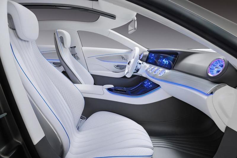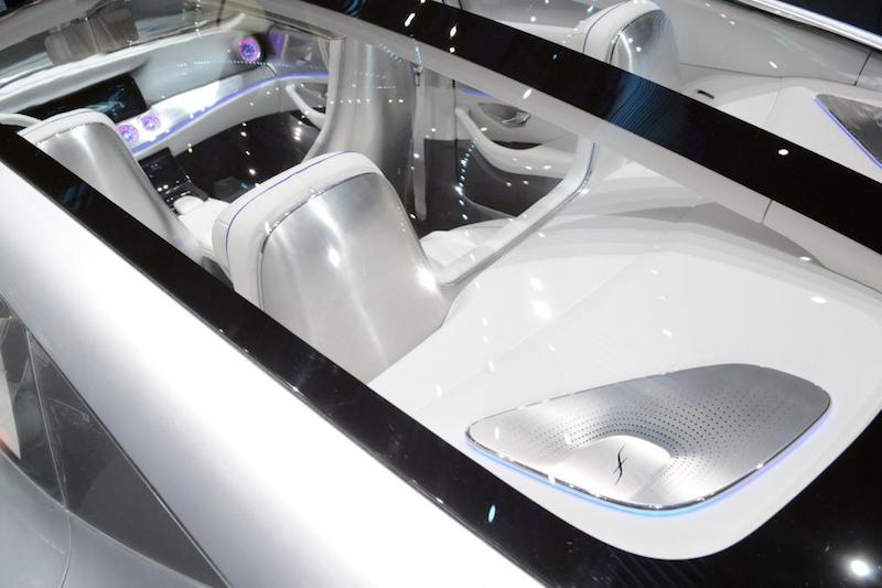 ภายในห้องโดยสาร สดใสด้วยเบาะหนังสีขาว และการตกแต่งที่ยึดโทนขาวเป็นหลัก แซมด้วยโทนสีฟ้าอ่อน ดูสะอาดตา เบาะนั่งรูปทรงล้ำสมัย เหมือนยานอวกาศ แผงหน้าปัดใช้เป็นคอนโทรแพด ให้ผู้ขับขี่ควบคุมทุกอย่างได้ด้วยการใช้นิ้วสัมผัส ลักษณะเดียวกับการใช้งานไอแพด โดย เบนซ์ ระบุว่า ภายในห้องโดยสารจะคล้ายกับที่นั่งของผู้บริหารในอนาคต และบอกด้วยว่า ต้นแบบ ไอเอเอ คันนี้ แสดงให้เห็นว่า วิศวกรของเบนซ์ ยังมีไอเดียดีๆ หรือเทคโนโลยีใหม่ๆ ที่จะพัฒนาและปรับปรุงยานยนต์ของเราให้มีประสิทธิภาพมากยิ่งขึ้นในอนาคต