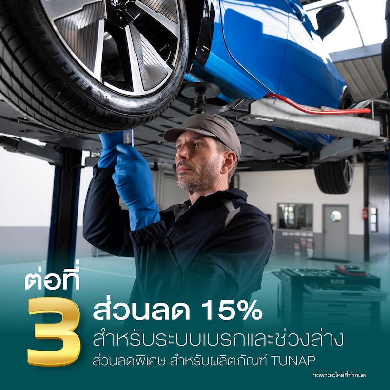 - ต่อที่ 3 ส่วนลด 15% สำหรับระบบเบรก, ระบบช่วงล่าง และส่วนลดพิเศษสำหรับผลิตภัณฑ์ Tunap*