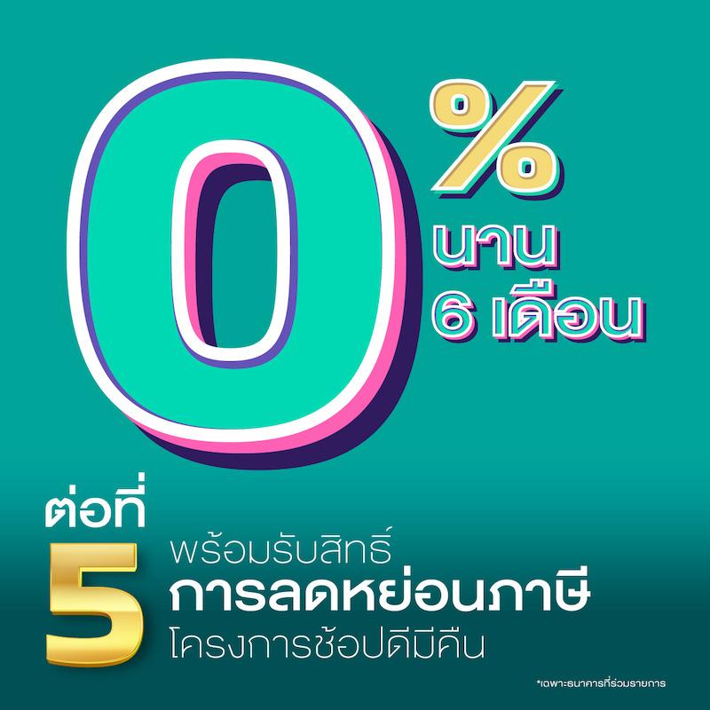 - ต่อที่ 5 สิทธิ์การลดหย่อนภาษี โครงการช้อปดีมีคืน พร้อมผ่อน 0% นาน 6 เดือน*