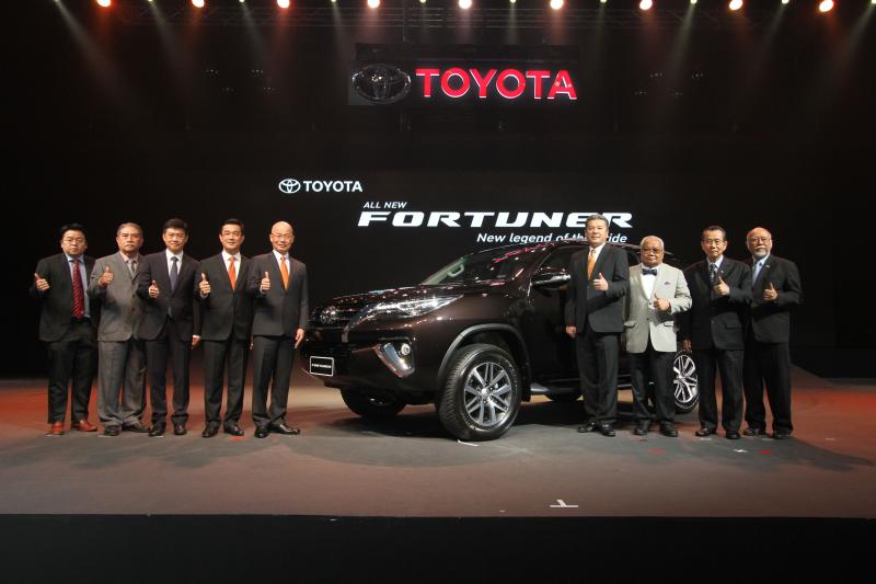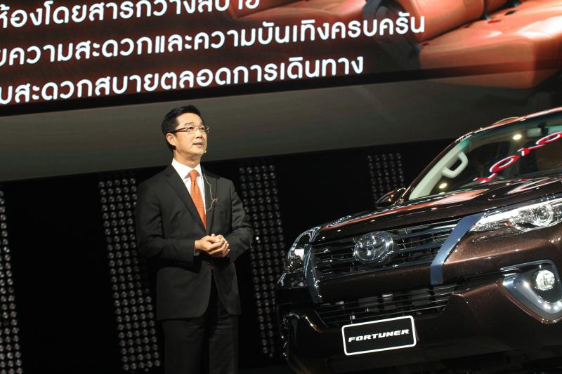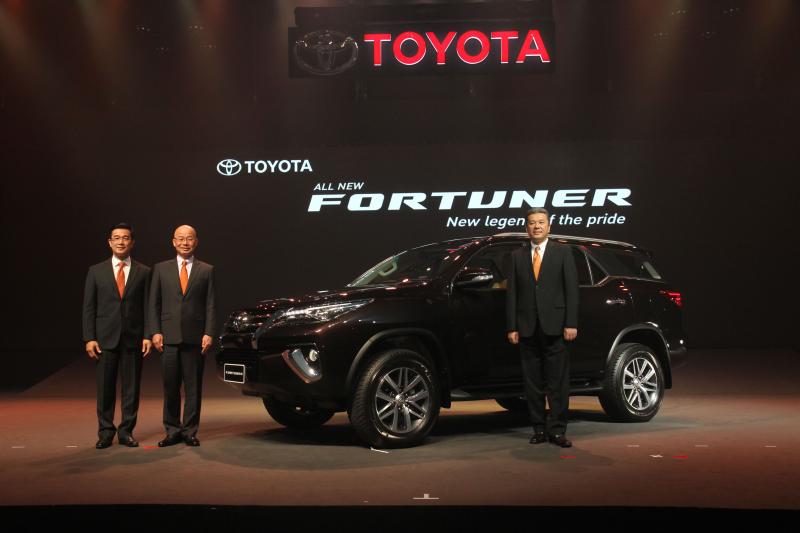 มร.ฮิโรกิ นาคาจิมะ หัวหน้าวิศวกรอาวุโส เจ้าหน้าที่บริหาร บริษัท โตโยต้า มอเตอร์ คอร์ปอเรชั่น และ มร.อาคิโตะ ทาจิบานะ รองกรรมการผู้จัดการใหญ่ บริษัท โตโยต้า มอเตอร์ ประเทศไทย จำกัด พร้อมด้วย นายวุฒิกร สุริยะฉันทนานนท์ ผู้ช่วยกรรมการผู้จัดการใหญ่อาวุโส บริษัท โตโยต้า มอเตอร์ ประเทศไทย จำกัด ร่วมแถลงข่าวแนะนำรถอเนกประสงค์รุ่นใหม่ล่าสุด “All New Fortuner … New legend of the pride” เมื่อวันที่ 16 กรกฎาคม 2558 ณ ห้องบางกอกคอนเวนชั่นเซ็นเตอร์ เซ็นทรัลเวิลด์