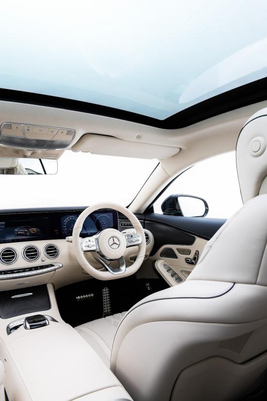 โดย Mercedes-Benz S 560 Coupé AMG Premium มาพร้อมกับหลังคาพาโนรามิคซันรูฟแบบ MAGIC SKY CONTROL ขนาดใหญ่ ที่สามารถปรับความเข้มของกระจกได้เพียงกดสวิตช์เพื่อกรองแสงที่เข้ามาได้ โดยพาโนรามิคซันรูฟนี้ มีความยาวถึง 2 ใน 3 ของความยาวหลังคา หรือมีพื้นที่ประมาณ 1.32 ตารางเมตร ในขณะที่ Mercedes-Benz S 560 Cabriolet AMG Premium มาพร้อมกับหลังคาแบบ fabric soft-top ที่มีความหนาถึง 3 ชั้น ชั้นนอกสุดเคลือบสารบูทีล (butyl) ซึ่งทำให้รถยนต์มีระดับเสียงรบกวนภายในห้องโดยสารน้อยที่สุด โดยหลังคาสามารถ กางเปิดหรือพับปิดได้ในเวลาเพียง 19 วินาที ขณะที่รถวิ่งที่ความเร็วสูงสุด 50 กม./ชม. อีกทั้งยังมาพร้อมกับแผงบังคับทิศทางลม(AIRCAP) อีกด้วย