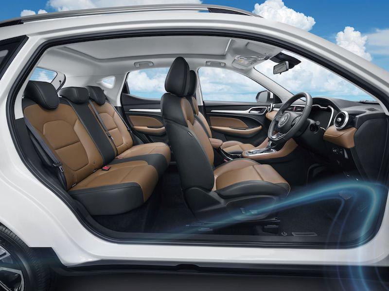 เพิ่มทางเลือกสำหรับลูกค้าที่มองหาความคุ้มค่ากับ NEW MG ZS รุ่น D ด้วยหัองโดยสารภายในที่ตกแต่งสไตล์ทูโทนด้วยสีน้ำตาลและสีดำ พรีเมียมยิ่งขึ้นด้วยเบาะหนังสังเคราะห์สุดหรู พร้อมหน้าจอแสดงผลอัจฉริยะ ขนาด 7 นิ้ว (Digital Multi-function Display) พร้อมลำโพง 6 ตำแหน่งช่องเชื่อมต่อ USB 5 ตำแหน่ง กล้องมองหลัง ถุงลมนิรภัยด้านข้าง และราวหลังคา สำหรับNEW MG ZS รุ่น X เติมเต็มความสุนทรีย์ในการขับขี่ด้วยหลังคาซันรูฟแบบพาโนรามา (Panoramic Sunroof) ที่เพิ่มความสะดวกสบายในการใช้งานมากขึ้น เพิ่มไฟตัดหมอกด้านหน้า ล้ออัลลอยด์ดีไซน์ 17 นิ้ว สะดวกสบายสำหรับผู้ขับขี่ยิ่งขึ้นด้วยเบาะนั่งคนขับ ปรับไฟฟ้าได้ 6 ทิศทาง ระบบควบคุมความเร็วอัตโนมัติ หรือ Cruise Control และระบบจำกัดความเร็ว ASL (Active Speed Limit) และฟังก์ชันครบคุ้มค่าที่สุดกับ NEW MG ZS รุ่น V ด้วยระบบปฏิบัติการอัจฉริยะ i-SMART ระบบควบคุมการเปิด-ปิด ไฟหน้าอัตโนมัติ ระบบปัดน้ำฝนด้านหน้า แบบอัตโนมัติ และปลอดภัย ยิ่งกว่าด้วยม่านถุงลมนิรภัย และกล้องมองภาพรอบทิศทาง พร้อมระบบตรวจสอบความผิดปกติของลมยาง TPMS (Tire Pressure Monitor System)
