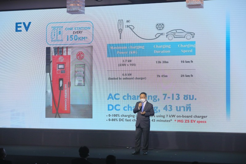 มร. จาง ไห่โป กรรมการผู้จัดการ บริษัท เอสเอไอซี มอเตอร์ – ซีพี จำกัด และบริษัท เอ็มจี เซลส์ (ประเทศไทย) จำกัด เปิดเผยว่า “ทิศทางและแนวโน้มของอุตสาหกรรมยานยนต์โลกในช่วงไม่กี่ปีที่ผ่านมาเปลี่ยนแปลงไปอย่างมาก มีการติดตั้งเทคโนโลยีเพื่อช่วยในการขับขี่ (Autonomous) การเชื่อมต่อระหว่างคนและรถ (Connectivity) มากยิ่งขึ้น     การใช้งานรถร่วมกัน (Sharing Economy) ได้รับการพูดถึงมากขึ้น รวมถึงการที่โลกกำลังเดินหน้าไปสู่เศรษฐกิจพลังงานสะอาด (Green Economy) และให้ความสำคัญกับ Emission Standard จากการตั้งเป้าหมายของแต่ละประเทศเพื่อทำให้เกิด Zero Emission จึงทำให้อุตสาหกรรมผลิตรถยนต์พลังงานไฟฟ้า (EV) เติบโต                         อย่างก้าวกระโดด”