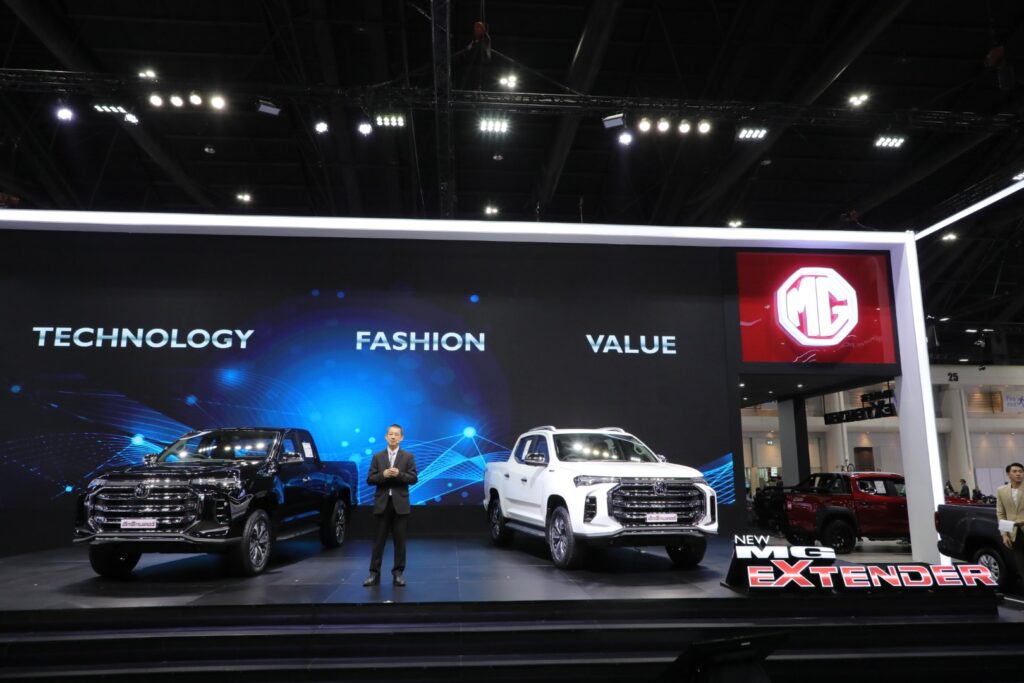 ภายในงาน Bangkok International Motor Show ครั้งที่ 42 เอ็มจีได้ยกขบวนยนตรกรรมหลากรุ่นมาจัดแสดง นำโดย ไฮไลท์ของงานกับการเปิดตัวสู่สาธารณชนอย่างเป็นทางการของกระบะพันธุ์ยักษ์ NEW MG EXTENDER รุ่นปรับโฉมใหม่ ตามด้วยรถ SUV อย่าง MG ZS และ MG HS รวมถึงรถปลั๊กอินไฮบริดอย่าง MG HS PHEV ที่มาพร้อมสีใหม่ สีเทา METAL ASH GREY อีกทั้งยังมีรถยนต์พลังงานไฟฟ้า 100% ทั้งรุ่น MG EP และ MG ZS EV พร้อมรถ Hatchback อย่างรุ่น MG 3 ที่มาด้วยข้อเสนอสุดพิเศษที่จะทำให้ลูกค้าทุกท่านได้เป็นเจ้าของยนตรกรรมที่มีพร้อมทั้งเทคโนโลยี ความทันสมัย และความคุ้มค่า ในราคาที่เข้าถึงได้จริง นอกจากนี้ บูธเอ็มจี ยังเพิ่มเติมความพิเศษให้กับผู้ที่เข้าชมได้มีโอกาสสัมผัสกับเทคโนโลยี และนวัตกรรม ซึ่งอยู่ในรถยนต์เอ็มจีอย่างใกล้ชิด ไม่ว่าจะเป็น ระบบปฏิบัติการอัจฉริยะ i-SMART ระบบช่วยขับขี่ Advanced Driver Assistance System (ADAS) ที่มีความเทียบเท่าระบบขับเคลื่อนอัตโนมัติระดับที่ 2 (Autonomous Level 2) รวมไปถึงเทคโนโลยีรถยนต์ที่ขับเคลื่อนด้วยไฟฟ้า หรือ xEV ทั้งในรูปแบบรถยนต์ Plug-in Hybrid และรถยนต์พลังงานไฟฟ้า 100% (BEV) สะท้อนให้เห็นถึงความตั้งใจของเอ็มจีในการมุ่งมั่นพัฒนาเทคโนโลยีที่จะช่วยให้ผู้ใช้รถสะดวกสบาย และทำให้ชีวิตง่ายยิ่งขึ้น