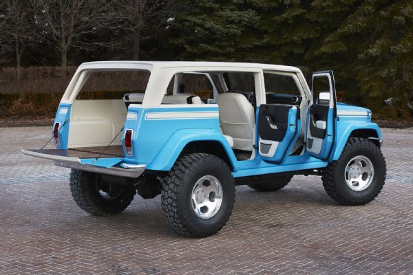 เริ่มด้วยรถต้นแบบแวน เชโรกี ชิฟ ที่ดูหน้าตาอาจจะเก่าสักหน่อย ประมาณสมัยปี 1970 แต่ประสิทธิภาพที่ตกแต่งเข้ามา ไม่เก่าเลยทีเดียว เล่นสีภายนอกด้วยสีคลาสสิค น้ำเงินนำ้ทะเล เดินแถบสีขาวด้านข้าง หลังคาขาว ทรงเรียบ กระจังหน้ายังเป็นของดั้งเดิมของรุ่น แวกอนเนียร์ กันชนหน้าและหลังแบบคลาสสิคเดิม เรียบง่าย ไฟส่องสว่างฮาโลเจน แผงปิดข้างด้านหลังสามารถเปิดออกได้ เพื่อรับอากาศสดชื่น กะทะล้อ 17 นิ้ว พร้อมยางใหญ่