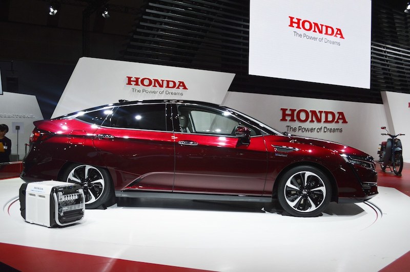 อีกค่ายหนึ่ง ฮอนด้า นำเสนอรถเชื้อเพลิงไฮดรอเจน ด้วยชื่อรุ่น ฮอนด้า คลาริตี้ ฟูอัลเซลส์ Honda Clarity Fuel Cell ที่เคยใช้ชื่อ เอฟซีเอ็กซ์ มาก่อนหน้านี้ เปลี่ยนมาเป็นชื่อใหม่ เอฟซีอีวี FCEV ที่น่าสนใจที่ว่า ฮอนด้า ไม่ได้ตั้งเป้าลูกค้าผู้บริโภคตามปกติ โดยเฉพาะในญี่ปุ่นเอง โดยวางแผนจะใช้รถทดสอบร่วมกับ ภาครัฐ และกลุ่มธุรกิจขนาดใหญ่ ที่สนใจเชื้อเพลิงไฮดรอเจนนี้ ก่อนจะถึงมือผู้บริโภคทั่วไป