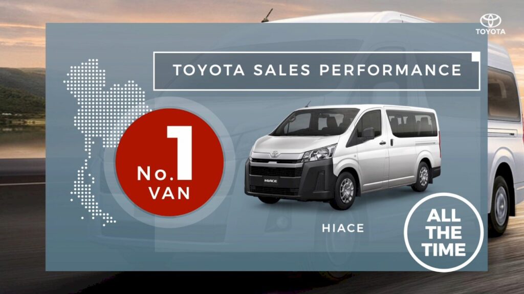 ในส่วนของตลาดรถยนต์อเนกประสงค์ โตโยต้ามียอดขายรวมทั้งปีเป็นอันดับ ถึง 2ปีซ้อน ด้วยยอดขายที่สูงเป็นประวัติการณ์ของโคโรลลา ครอส ส่วนฟอร์จูนเนอร์เองก็มียอดขายเป็นอันดับ ในตลาดรถกระบะดัดแปลงต่อเนื่องมาเป็นเวลา 10 ปี ในขณะเดียวกัน คัมรี ก็ครองอันดับ ในตลาดรถยนต์ขนาดกลาง ส่วนไฮเอซก็ครองอันดับ ตลอดกาลเช่นกันสำหรับในตลาดรถตู้ ซึ่งเราขอแสดงความขอบคุณต่อลูกค้าคนสำคัญและผู้ที่มีส่วนเกี่ยวข้องทุกท่านที่ได้สนับสนุนเราเป็นอย่างดีเสมอมา
