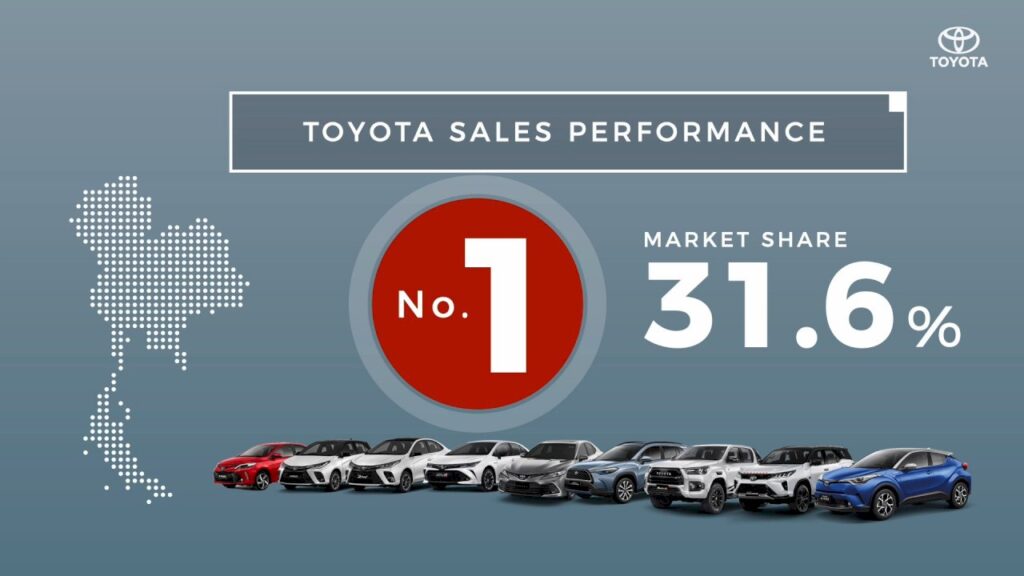 มร. ยามาชิตะ กล่าวเสริมว่า สำหรับโตโยต้า เราตั้งเป้ายอดขายอยู่ที่ 284,000 คัน หรือเพิ่มขึ้น 18.5% โดยครองส่วนแบ่งทางการตลาดอยู่ที่ 33%”