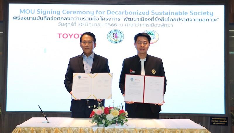 โตโยต้าและเมืองพัทยาร่วมลงนามความร่วมมือ “โครงการพัฒนาเมืองต้นแบบที่ยั่งยืนปราศจากมลภาวะ” ยกระดับการเดินทางและระบบขนส่งสาธารณะในเมืองพัทยาโดยใช้รถยนต์พลังงานสะอาด เพื่อเป็นส่วนหนึ่งในการมุ่งสู่เป้าหมายการสร้างความเป็นกลางทางคาร์บอน