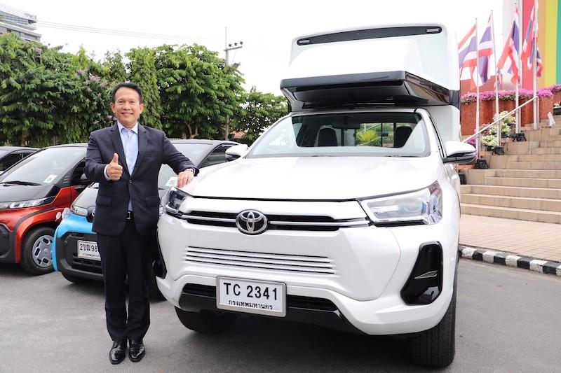 ทั้งนี้ โตโยต้าจึงได้ร่วมมือกับเมืองพัทยา และ สหกรณ์เดินรถพัทยา ในการวางแผนที่จะนำรถยนต์พลังงานไฟฟ้าต้นแบบมาทดลองใช้ภายในโครงการฯ โดยการนำรถกระบะโตโยต้า รุ่น Hilux REVO BEV ซึ่งเป็นรถกระบะพลังงานไฟฟ้า 100% มาทดลองให้บริการในรูปแบบรถโดยสารประจำทางสาธารณะแก่ประชาชนและนักท่องเที่ยวในเมืองพัทยา โดยคาดว่าจะพร้อมให้บริการได้ภายในปี 2567 และถือเป็นครั้งแรกในประเทศไทยที่ได้มีการนำรถยนต์ไฟฟ้ามาทดลองให้บริการเป็นรถขนส่งสาธารณะเพื่อพัฒนาไปสู่การใช้งานจริง และวางรากฐานในการพัฒนาระบบขนส่งสาธารณะเมืองพัทยาให้มีความทันสมัย และปราศจากมลภาวะ
