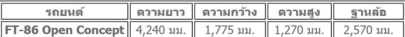 รถสปอร์ตต้นแบบ ที่รวบรวมทุกความคล่องแคล่ว เข้าถึงทุกสมรรถนะ คงรูปแบบที่นั่ง 2+2 พร้อมหลังคาผ้าใบพับเก็บอัตโนมัติ ที่สำคัญ FT-86 Open Concept เป็นอีกหนึ่งรถต้นแบบที่เต็มไปด้วยความมีชีวิตชีวา ควบคู่ไปกับสมรรถนะแห่งอนาคต สะท้อนภาพลักษณ์ความหรูหรา ผสานความเท่แบบสปอร์ตได้อย่างลงตัวไปกับดีไซน์ที่บ่งบอกถึงรสนิยมแห่งความคลาสสิคสไตล์มิลาน (Milan – Based Design) ด้วยสีขาว (True Bright White) ตัดกับสีน้ำเงินเนวี (Navy Blue) ของหลังคาผ้าใบ อันเป็นเอกลักษณ์เฉพาะตัวของยานยนต์ต้นแบบแห่งอนาคต