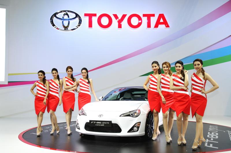 บริษัท โตโยต้า มอเตอร์ ประเทศไทย จำกัด เข้าร่วมแสดงยานยนต์ที่มีความหลากหลาย ภายใต้แนวคิด “The Move of Happiness” สื่อถึงความพร้อมที่จะขับเคลื่อนความสุขให้โอบล้อมรอบตัว ด้วยการออกแบบพื้นที่จัดแสดง แบบ 360 องศา บนพื้นที่ 1,680 ตารางเมตร พร้อมบริการที่เป็นมิตรสู่ลูกค้าโตโยต้าทุกคน โดยนำรถยนต์มาจัดแสดงหลากหลายรุ่น ทั้งรถยนต์ต้นแบบ รถยนต์นั่งส่วนบุคคล และรถยนต์เพื่อการพาณิชย์ พร้อมด้วยข้อเสนอสุดพิเศษส่งท้ายปลายปี เพื่อตอบสนองทุกความต้องการของลูกค้าทุกระดับ