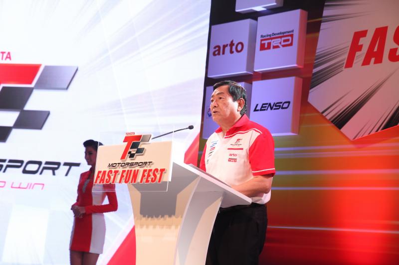 มร.เคียวอิจิ ทานาดะ กล่าวว่า “การพัฒนาวงการมอเตอร์สปอร์ต ถือเป็นนโยบายระดับสากลของบริษัทโตโยต้าทั่วโลก และสำหรับ บริษัท โตโยต้า มอเตอร์ ประเทศไทย จำกัด ได้มีการดำเนินตามนโยบายนี้มากว่า 20 ปี ทั้งรูปแบบของการจัดการแข่งขันภายในประเทศ รวมถึงการผลักดันนักแข่งเข้าสู่การแข่งขันระดับสากล โดยในปีนี้ โตโยต้า มอเตอร์สปอร์ต ยังคงจัดขึ้นภายใต้แนวคิด Fast Fun Fest เพื่อตอกย้ำภาพลักษณ์ของโตโยต้าด้านความเป็นผู้นำวงการมอเตอร์สปอร์ตทั้งในประเทศและระดับนานาชาติ ซึ่งเราได้รวบรวมความสุขในรูปแบบการขับขี่ที่สนุกสนานกับรถยนต์โตโยต้า รวมทั้งเปิดโอกาสให้กลุ่มนักศึกษาและผู้สนใจทั่วไปได้ใกล้ชิดกับ โตโยต้า มอเตอร์สปอร์ต มากยิ่งขึ้นกับการแข่งขัน 5 สนาม ทุกภูมิภาค ทั่วประเทศ”