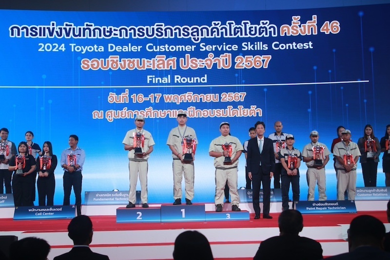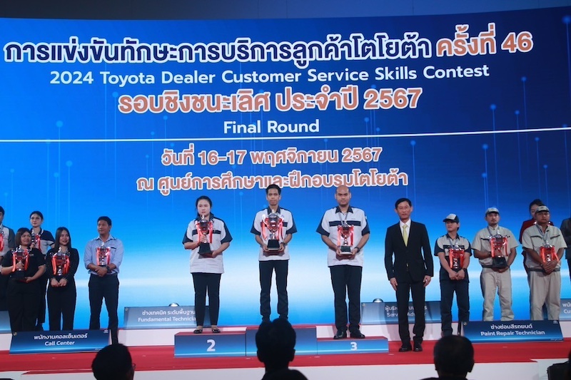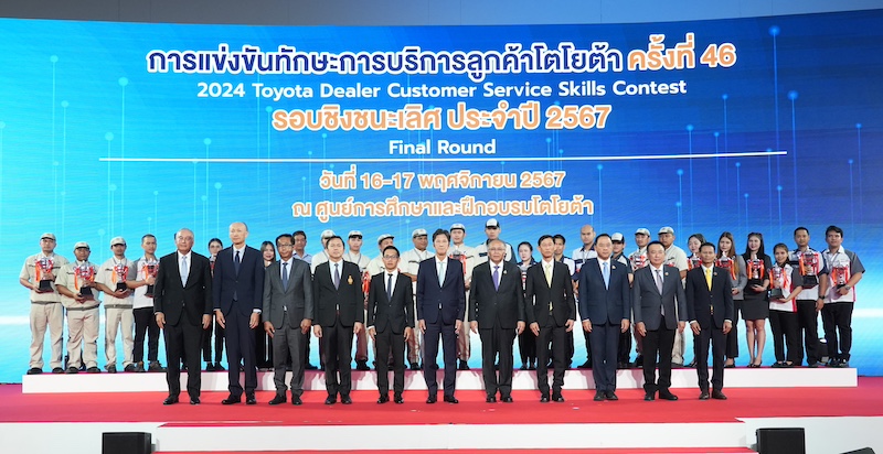 บริษัท โตโยต้า มอเตอร์ ประเทศไทย จำกัด มุ่งมั่นในการพัฒนาทรัพยากรบุคคล เพื่อก้าวสู่การเป็นผู้นำแห่งการขับเคลื่อน (Mobility Company) และหนึ่งในกลไกสำคัญในการพัฒนาขีดความสามารถของบุคลากร นั่นคือ การแข่งขันทักษะการบริการลูกค้าโตโยต้า ที่โตโยต้าได้ดำเนินการมาอย่างต่อเนื่อง โดยมีวัตถุประสงค์ เพื่อพัฒนาทักษะการบริการของบุคลากรผู้แทนจำหน่าย ให้มีความพร้อมในการให้บริการลูกค้า ภายใต้ความเปลี่ยนแปลง ทั้งในด้านพฤติกรรม ความต้องการของลูกค้า และเทคโนโลยียานยนต์ที่มีพัฒนาการก้าวหน้าอย่างต่อเนื่องและรวดเร็ว ให้มีประสิทธิภาพยิ่งขึ้น เพื่อรักษาความผูกพันของลูกค้าได้อย่างต่อเนื่องและยั่งยืน โดยในปี 2567 นี้ เป็นการแข่งขันปีที่ 46 (46th Toyota Dealer Customer Service Skills Contest) โดยมีการจัดกิจกรรมแข่งขันครบทั้ง 8 ประเภทการแข่งขันครอบคลุมการปฏิบัติงานด้านบริการลูกค้า และด้านตัวถังและสีรถยนต์ พร้อมเนื้อหาที่เข้มข้น มุ่งเน้นการประยุกต์จากการปฏิบัติที่หน้างานจริงที่ผู้แทนจำหน่าย โดยมีผู้เข้าร่วมแข่งขันจากทุกผู้แทนจำหน่ายโตโยต้าทั่วประเทศกว่า 1,100 คน เข้าร่วมสอบทฤษฎีเพื่อคัดกรอง และผ่านเข้าสู่การแข่งขันภาคปฏิบัติในรอบคัดเลือก รวม 754 คน และมีเพียง 91 คนเท่านั้น ที่เป็นสุดยอดฝีมือผ่านการแข่งขันเข้ามาจนถึงรอบชิงชนะเลิศระดับประเทศ