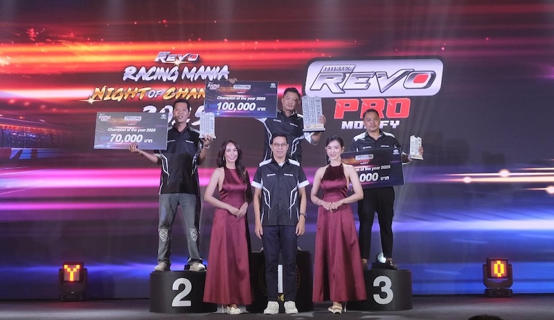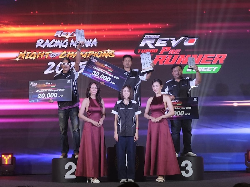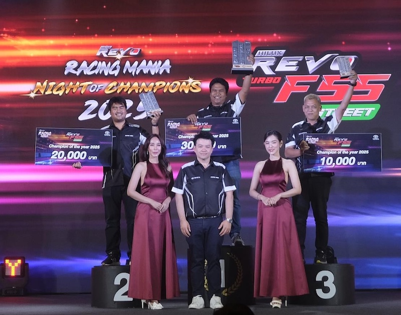 โตโยต้า เฉลิมฉลองค่ำคืนแห่งแชมป์เปี้ยนมอบรางวัลแชมป์ Drag Racingในงาน “HILUX REVO RACING MANIA NIGHT OF CHAMPIONS 2025”