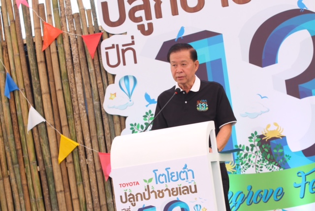 นำคณะอาสาสมัครอันประกอบด้วยตัวแทนจากบริษัทในเครือ กลุ่มพนักงานโตโยต้าและครอบครัว สมาชิกชมรมโตโยต้าจิตอาสา สมาชิกชมรมอีโตโยต้าคลับ (e-TOYOTACLUB) และประชาชนทั่วไป จำนวนกว่า 5,500 คน ร่วมกิจกรรม “โตโยต้าปลูกป่าชายเลนปีที่ 13” ทำการปลูกพันธุ์ไม้ชายเลนจำนวน 55,000 ต้น เมื่อวันเสาร์ที่ 17 มิถุนายน 2560 ที่ผ่านมา ณ ศูนย์ศึกษาธรรมชาติกองทัพบก