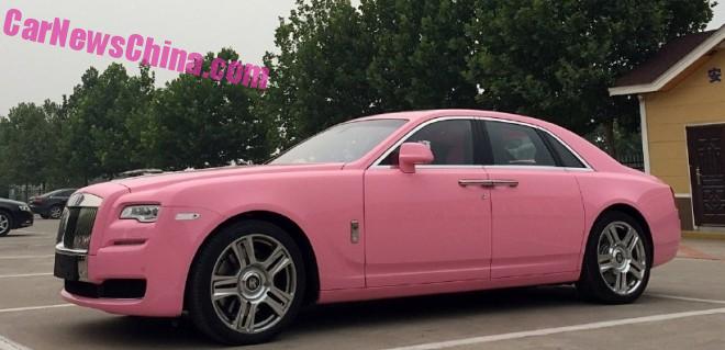 เป็นธรรมดาของประเทศที่มีจำนวนพลเมืองมหาศาลจะต้องมีทั้งเศรษฐี มหาเศรษฐี หรือผู้มีอันจะกินจำนวนมาก ในประเทศจีนที่กว้างใหญ่ไพศาลก็เช่นกัน แถมยังมีรสนิยมสุนทรีย์แตกต่างจากบุคคลธรรมดาทั่วไปอย่างเช่นโรลส์-รอยซ์ที่นำมาเสนอ 2 คันนี้ คันแรกรุ่นโกสท์ สีชมพูสดใส ตกแต่งภายในด้วยสีแดง ติดฟีล์มทึบ พบได้ในเมืองตังชาน Tangshan มลรัฐเฮไบ่ Hebei