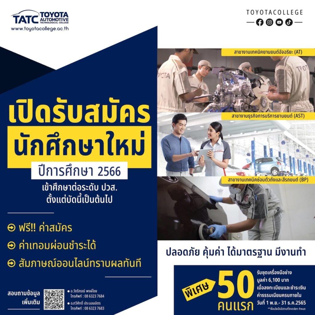 โอกาสดีสำหรับสายงานอาชีพ วิทยาลัยเทคโนโลยียานยนต์โตโยต้า เปิดรับสมัครนักศึกษาใหม่พร้อม โอกาส ร่วมงานกับผู้แทนจำหน่ายโตโยต้าทั่วประเทศและทำงานที่ประเทศญี่ปุ่น