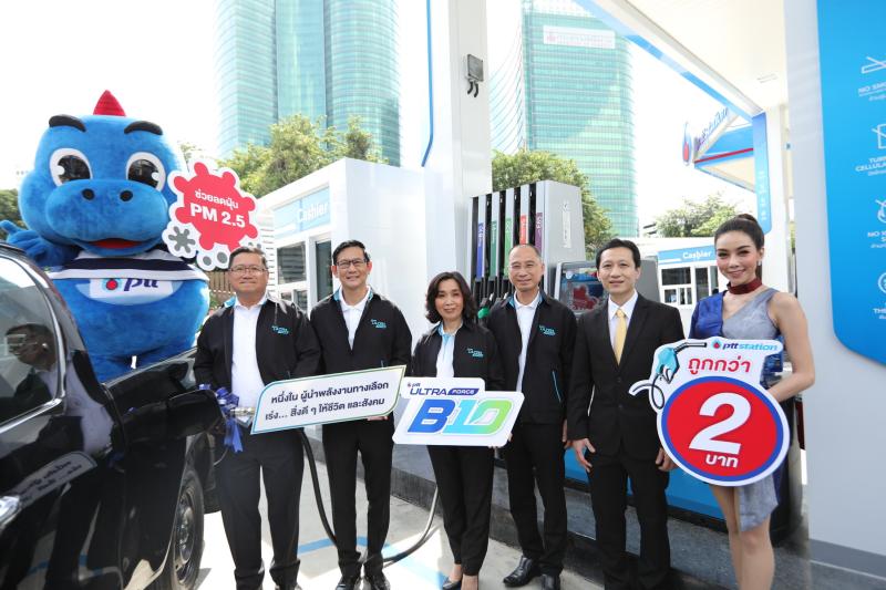 นายชาญศิลป์ ตรีนุชกร ประธานเจ้าหน้าที่บริหารและกรรมการผู้จัดการใหญ่ บริษัท ปตท. จำกัด (มหาชน) (ปตท.) นายอรรถพล ฤกษ์พิบูลย์ ประธานกรรมการ บริษัท ปตท. น้ำมันและการค้าปลีก จำกัด (มหาชน) (โออาร์) นางสาวจิราพร ขาวสวัสดิ์ ประธานเจ้าหน้าที่บริหารและกรรมการผู้จัดการใหญ่ โออาร์ และนายบรรพจน์ เต็งวงษ์วัฒนะ รองผู้อำนวยการฝ่ายกิจการสัมพันธ์ บริษัท โตโยต้า มอเตอร์ ประเทศไทย จำกัด ร่วมประชาสัมพันธ์จุดจำหน่ายน้ำมัน พีทีที อัลตร้าฟอร์ซ ดีเซล บี10 (B10) แห่งใหม่ ณ สถานีบริการน้ำมัน พีทีที สเตชั่น สาขาวิภาวดี 11 กรุงเทพฯ เพื่ออำนวยความสะดวกให้กับกลุ่มลูกค้ารถบรรทุก รถกระบะ และรถตู้