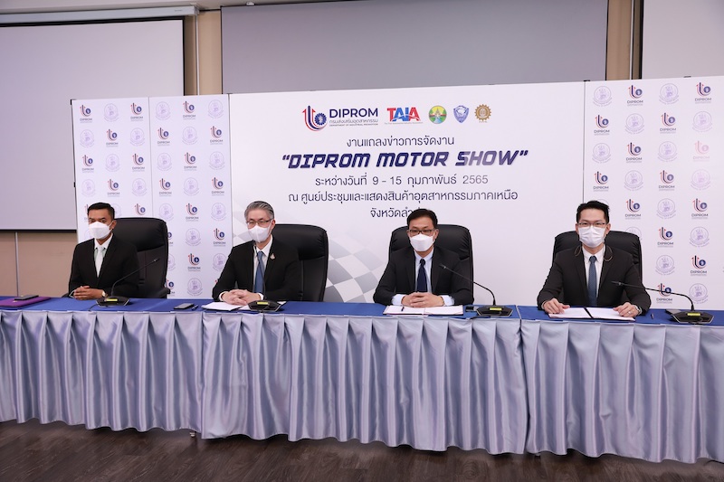 นายณัฐพล รังสิตพล อธิบดีกรมส่งเสริมอุตสาหกรรม กล่าวว่า อุตสาหกรรมยานยนต์ยังคงเป็นอุตสาหกรรมที่มีศักยภาพ และเป็นปัจจัยสำคัญต่อการเติบโตของมูลค่าทางเศรษฐกิจของประเทศ เนื่องด้วยไทยยังคงเป็นฐานสำคัญในการผลิตทั้งชิ้นส่วนยานยนต์ การประกอบรถยนต์ รวมถึงการผลิตรถยนต์เชิงพาณิชย์ ซึ่งสถานการณ์อุตสาหกรรมยานยนต์ไทยปี 2564   ที่ผ่านมานั้นพบว่าเริ่มมีการฟื้นตัวอย่างต่อเนื่องจากการส่งออกที่ปรับตัวเพิ่มขึ้น โดยมีการผลิตรถยนต์ 1.6 ล้านคัน ซึ่งเพิ่มขึ้น 12% เมื่อเปรียบเทียบกับปี 2563 แบ่งเป็นขายในประเทศ 0.75 ล้านคัน และส่งออกต่างประเทศ 0.85 ล้านคัน ส่วนในปี 2565 ได้ประมาณการว่าจะมีการผลิตรถยนต์ 1.7-1.8 ล้านคัน ซึ่งมีปัจจัยที่สำคัญทั้งการเปิดประเทศให้นักท่องเที่ยวเข้ามาเที่ยวมากขึ้น มาตรการส่งเสริมการลงทุนและสิทธิประโยชน์จากภาครัฐ รวมถึงการส่งออกที่ขยายตัวตามเศรษฐกิจโลกที่ฟื้นตัว  ดังนั้น ดีพร้อม จึงได้จับมือกับสมาคมอุตสาหกรรมยานยนต์ไทย รวมถึงภาคีเครือข่ายภาครัฐ-เอกชน ร่วมจัดงาน “DIPROM MOTOR SHOW” ซึ่งจะจัดขึ้นที่อาคารศูนย์ประชุมและแสดงสินค้าอุตสาหกรรมภาคเหนือ จังหวัดลำปาง ระหว่างวันที่ วันที่ 9-15  กุมภาพันธ์ 2565   และเป็นครั้งแรกที่ ดีพร้อม ดำเนินการจัดกิจกรรมดังกล่าว เพื่อกระตุ้นตลาดยานยนต์โดยเฉพาะในกลุ่มจังหวัดภาคเหนือ และเป็นการเพิ่มช่องทางในการจำหน่ายสำหรับผู้ประกอบการอุตสาหกรรมยานยนต์  โดยมีค่ายรถยนต์และจักรยานยนต์ชั้นนำเข้าร่วมมากกว่า 15 แบรนด์  ซึ่งคาดว่าจากการจัดกิจกรรมนี้จะสามารถสร้างมูลค่าทางเศรษฐกิจให้กับผู้ประกอบภาคการผลิตของอุตสาหกรรมยานยนต์ได้กว่า 100  ล้านบาท