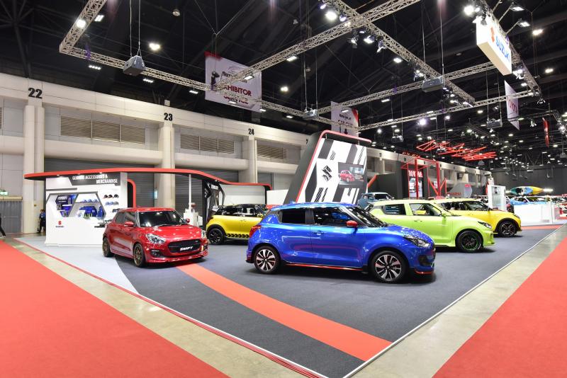 ซูซูกิ มอเตอร์ (ประเทศไทย) นำรถยนต์ ซูซูกิ สวิฟท์ ใหม่ ที่ทำการโมดิฟายและตกแต่งเป็นพิเศษจำนวน 8 คัน จากหลากหลายสไตล์การตกแต่งและสีสันอันแตกต่าง เข้ามาร่วมโชว์ในงานครั้งนี้ ไฮไลท์สำคัญ คือ การนำ ซูซูกิ สวิฟท์ มาตกแต่งด้วยชุดแต่งสุดพิเศษ นำเข้าจากประเทศญี่ปุ่น