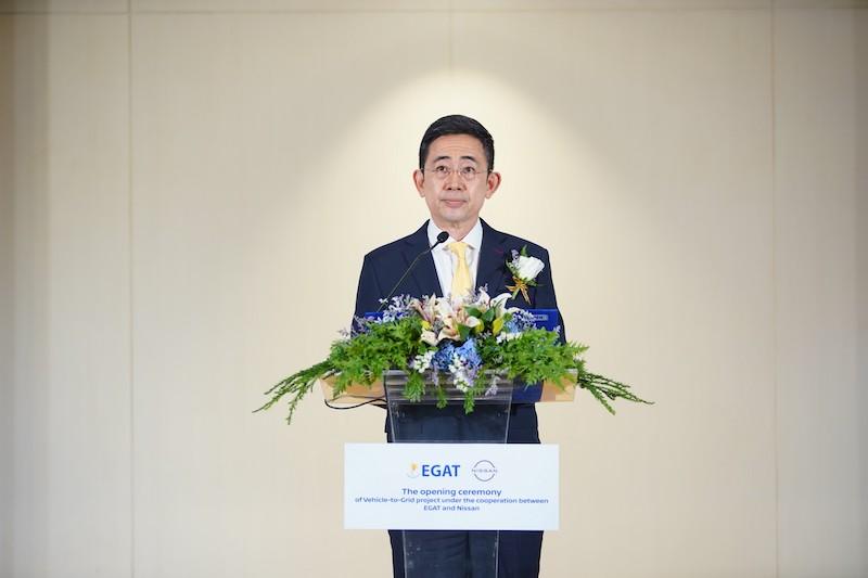 บุญญนิตย์ วงศ์รักมิตร ผู้ว่าการการไฟฟ้าฝ่ายผลิตแห่งประเทศไทย กล่าวว่า การส่งเสริมการใช้ยานยนต์ไฟฟ้า (EV) ภายในประเทศถือเป็นหนึ่งในแนวทางสำคัญของการผลักดันประเทศไทยสู่เป้าหมาย Carbon Neutrality ในปี ค.ศ. 2050 กฟผ. ในฐานะหน่วยงานที่ดูแลความมั่นคงด้านพลังงานไฟฟ้าของประเทศ ได้เตรียมความพร้อมของระบบไฟฟ้าและการบริหารจัดการพลังงานรองรับการใช้ EV ที่เพิ่มขึ้นในอนาคต รวมถึงรองรับเทคโนโลยีการจ่ายไฟฟ้าจากแบตเตอรี่ยานยนต์ไฟฟ้าเข้าสู่ระบบไฟฟ้า (Vehicle-to-Grid หรือ V2G) โดย กฟผ. ได้พัฒนาออกแบบระบบ EGAT V2G & VPP ซึ่งเป็นระบบควบคุมการสั่งจ่ายไฟฟ้าจากแบตเตอรี่ของรถอีวีหลาย ๆ คัน กลับเข้าสู่ระบบไฟฟ้าพร้อมกัน และส่งกำลังไฟฟ้าเสมือนนี้ให้ศูนย์ Demand Response Control Center (DRCC) ที่อยู่ภายใต้การดูแลของ กฟผ. ขานรับแนวคิดโรงไฟฟ้าเสมือน (Virtual Power Plant หรือ VPP) รองรับการรับซื้อไฟฟ้าส่วนเหลือจากแบตเตอรี่รถยนต์ไฟฟ้าเข้าสู่ระบบไฟฟ้าในอนาคต เพื่อเป็นระบบสำรองไฟฟ้าช่วยเสริมความมั่นคงไฟฟ้าของประเทศ โดยเฉพาะในช่วงเวลาที่เกิดความต้องการใช้ไฟฟ้าสูงสุดในโครงการพัฒนาแผนการขับเคลื่อนการดำเนินงานด้านสมาร์ทกริดของประเทศไทย ระยะปานกลาง พ.ศ. 2565 – 2574 ภายใต้โครงการทดสอบนวัตกรรมที่นำเทคโนโลยีมาสนับสนุนการให้บริการด้านพลังงาน (ERC Sandbox) ระยะที่ 2 โดยความร่วมมือระหว่าง กฟผ. กับนิสสัน ประเทศไทย ในครั้งนี้ จะเป็นการขับเคลื่อนสำคัญสำหรับการศึกษาเทคโนโลยี V2G ที่เหมาะสมกับประเทศไทย รวมถึงการนำข้อมูลมาใช้จัดทำข้อกำหนดและระเบียบปฏิบัติให้สอดรับกับแนวทางการใช้พลังงานรูปแบบใหม่ในอนาคตต่อไป