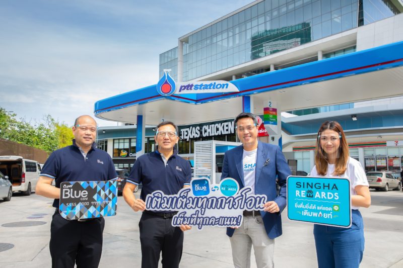 นายนิสิต พงษ์วุฒิประพันธ์ รองกรรมการผู้จัดการใหญ่กลยุทธ์องค์กร นวัตกรรมและความยั่งยืน บริษัท ปตท. น้ำมันและการค้าปลีก จำกัด (มหาชน) หรือ โออาร์ พร้อมด้วย นายธิติพร ธรรมาภิมุขกุล หัวหน้าคณะผู้บริหารกลุ่มการตลาดแบรนด์ (Chief Marketing Officer – Brand) บริษัท บุญรอดเทรดดิ้ง จำกัด ร่วมกันเปิดแคมเปญ “โอนคะแนนสะสม สิงห์ รีวอร์ด กับ คะแนนสะสม บลูการ์ด” เพื่อเป็นการเพิ่มความหลากหลายในการรับสิทธิพิเศษต่าง ๆ ของสมาชิก บลูการ์ด (Blue Card) และสมาชิก สิงห์ รีวอร์ด (Singha Rewards) โดยสมาชิกสามารถนำคะแนนสะสม บลูการ์ด แลกเป็นคะแนนสะสม สิงห์ รีวอร์ด ได้ ผ่านทาง www.pttbluecard.com