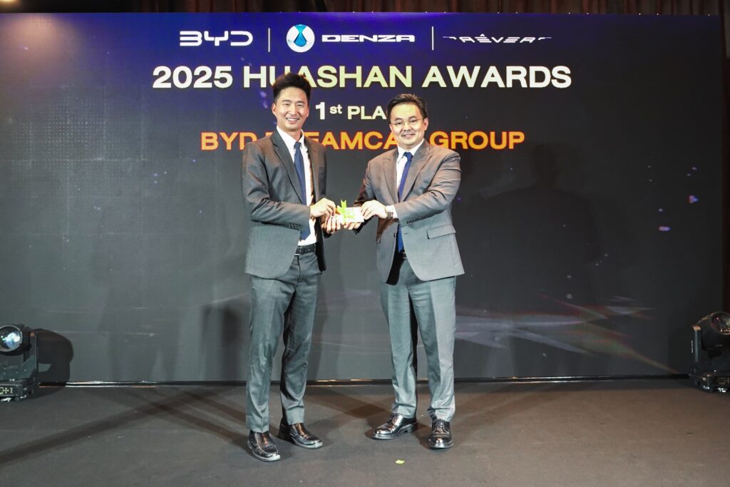 - บีวายดี ประเทศไทย ยังมอบรางวัลผู้จำหน่ายดีเด่น HUASHAN Award 2025 และ TAISHAN Award 2025 เพื่อเชิดชูความสำเร็จของกลุ่มผู้จำหน่าย ที่มียอดขายสูงกว่า 500 คันต่อปี และ 500 คันต่อปี