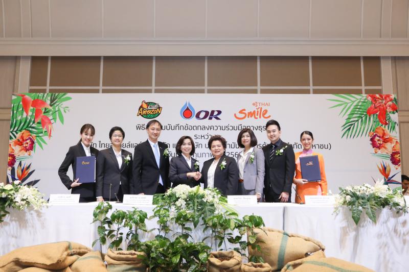 เมื่อเร็ว ๆ นี้ บริษัท ปตท. น้ำมันและการค้าปลีก จำกัด (มหาชน) หรือ พีทีที โออาร์ และ บริษัท ไทยสมายล์แอร์เวย์ จำกัด ได้ลงนามบันทึกข้อตกลงความร่วมมือ นำความเข้มข้นของกาแฟตามแบบฉบับของคาเฟ่ อเมซอน เสิร์ฟให้แก่ผู้โดยสารไทยสมายล์ทุกที่นั่ง ทุกเที่ยวบิน เป็นครั้งแรก สร้างประสบการณ์ใหม่ให้แก่ผู้โดยสารตั้งแต่ไตรมาสที่ 4 ปี 2562
