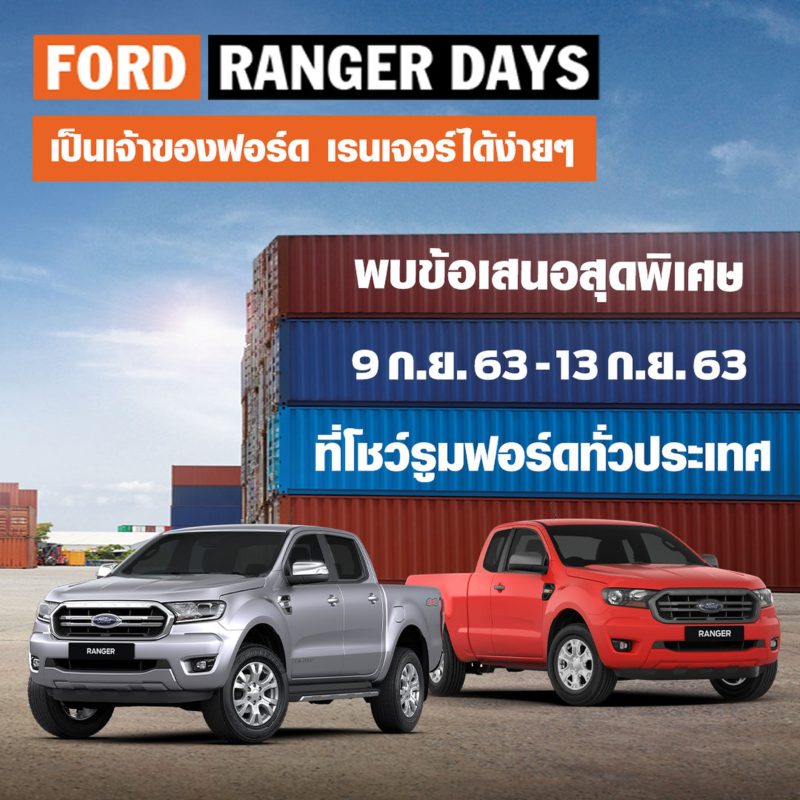 ฟอร์ด ประเทศไทย จัดแคมเปญ ‘Ranger Days’ มอบข้อเสนอพิเศษสุดคุ้ม ให้ลูกค้าจับจองเป็นเจ้าของฟอร์ด เรนเจอร์ได้ง่ายๆ ตอบโจทย์ลูกค้าที่ต้องการใช้รถยนต์ส่วนตัวในการเดินทางด้วยวิถีใหม่ ด้วยโปรโมชั่นราคาสุดเร้าใจ ตั้งแต่ 1 กันยายน ถึง 30 กันยายน 2563 ที่โชว์รูมฟอร์ดทั่วประเทศ พิเศษต่อที่ 2 รับบัตรน้ำมันมูลค่า 5,000 บาท เมื่อจองและออกรถฟอร์ด เรนเจอร์ รุ่น โอเพ่นแค็บ XLS กระบะตอนครึ่งราคาสุดคุ้ม และฟอร์ด เรนเจอร์ ลิมิเต็ด กระบะเครื่องยนต์ 2.0 ลิตรราคาสุดคุ้ม ภายในวันที่ 9-13 กันยายน 2563 และออกรถภายในเดือนกันยายนเท่านั้น