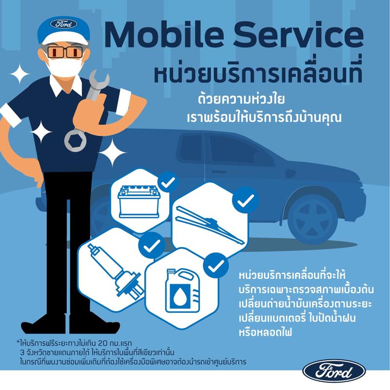 หน่วยบริการเคลื่อนที่ (Mobile Service) ของฟอร์ด จะให้การบริการที่ไม่จำเป็นต้องใช้เครื่องมือพิเศษ เช่น การตรวจสภาพเบื้องต้น การเปลี่ยนถ่ายน้ำมันเครื่องตามระยะ การเปลี่ยนแบตเตอรี่ ใบปัดน้ำฝนและหลอดไฟ โดยลูกค้าสามารถติดต่อศูนย์บริการฟอร์ด เพื่อขอใช้บริการจากหน่วยบริการเคลื่อนที่ (Mobile Service) จากผู้จำหน่ายได้ โดยหน่วยบริการเคลื่อนที่ พร้อมให้บริการลูกค้าถึงบ้านตามเวลานัดหมาย