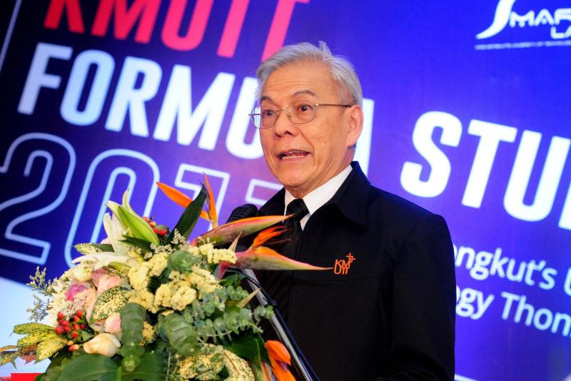 รศ.ดร.ศักรินทร์ ภูมิรัตน อธิการบดีมหาวิทยาลัยเทคโนโลยีพระจอมเกล้าธนบุรี กล่าวว่า มจธ. มีนโยบายในการมุ่งสู่การเป็นมหาวิทยาลัยที่มีการพัฒนาอย่างต่อเนื่องและยั่งยืน โดยฉพาะอย่างยิ่งด้านวิทยาศาสตร์ เทคโนโลยี และงานวิจัย เน้นการพัฒนานักศึกษาอย่างรอบด้าน การสนับสนุนและผลักดันให้นักศึกษาได้พัฒนาและสร้างสรรค์ผลงานโดยการลงมีทำ เรียนรู้ และมีการปรับปรุงพัฒนาอย่างต่อเนื่อง รวมทั้งการได้มีโอกาสทำงานร่วมกับภาคอุตสาหกรรมต่างๆเพื่อหล่อหลอมนักศึกษาให้เป็นบัณฑิตที่มีความเป็นมืออาชีพ มีความพร้อมในการเข้าทำงานในสถานประกอบการอย่างมีคุณภาพ KMUTT Formula Student คืออีกหนึ่งตัวอย่างที่แสดงให้เห็นถึงแนวคิดดังกล่าวได้อย่างชัดเจน จากการพัฒนารถแข่ง Formula Student ซึ่งในปัจจุบันมีรถที่ถูกออกแบบและพัฒนาโดยทีมนักศึกษาถึง 9 คัน 9 รุ่น มีการส่งต่อด้านเทคโนโลยี และ know how จากรุ่นสู่รุ่น เพื่อทำให้รถแข่งมีสมรรถนะในด้านต่างๆที่ดีที่สุดในการแข่งขัน