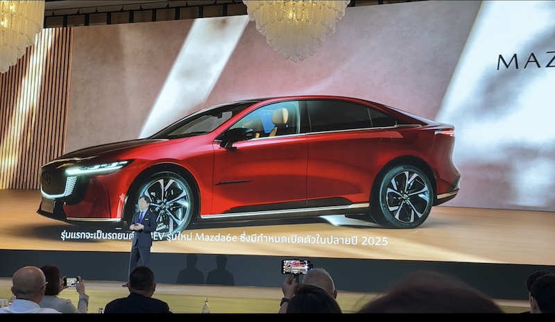 สำหรับประเทศไทยซึ่งเป็นตลาดหลักที่สำคัญอันดับต้น ๆ มาสด้าตระหนักถึงกระแสตอบรับที่ดีและความต้องการรถไฟฟ้าที่เกิดขึ้นอย่างรวดเร็ว มาสด้าจึงเร่งแผนในการนำเสนอรถยนต์ไฟฟ้าให้เร็วขึ้น เพื่อตอบสนองกับความต้องการของลูกค้า โดยวางแผนในการแนะนำรถไฟฟ้าในประเทศไทยเป็นไปตามกลยุทธ์ 3 เฟส เช่นเดียวกัน ซึ่งเฟส 2 จะเป็นการนำเสนอรถพลังงานไฟฟ้าในไทย โดยมาสด้าจะทำการเปิดตัวแนะนำเทคโนโลยียานยนต์ไฟฟ้าในประเทศไทย ทั้ง BEV, PHEV, HEV ระหว่างปี พ.ศ. 2568 – 2570 โดยเริ่มจากการเปิดตัวแนะนำรถยนต์ไฟฟ้า BEV รุ่น Mazda6e ในปีนี้ ซึ่งเป็นรถไฟฟ้าที่เกิดจากความร่วมมือระหว่างมาสด้าและพาร์ทเนอร์ในประเทศจีน