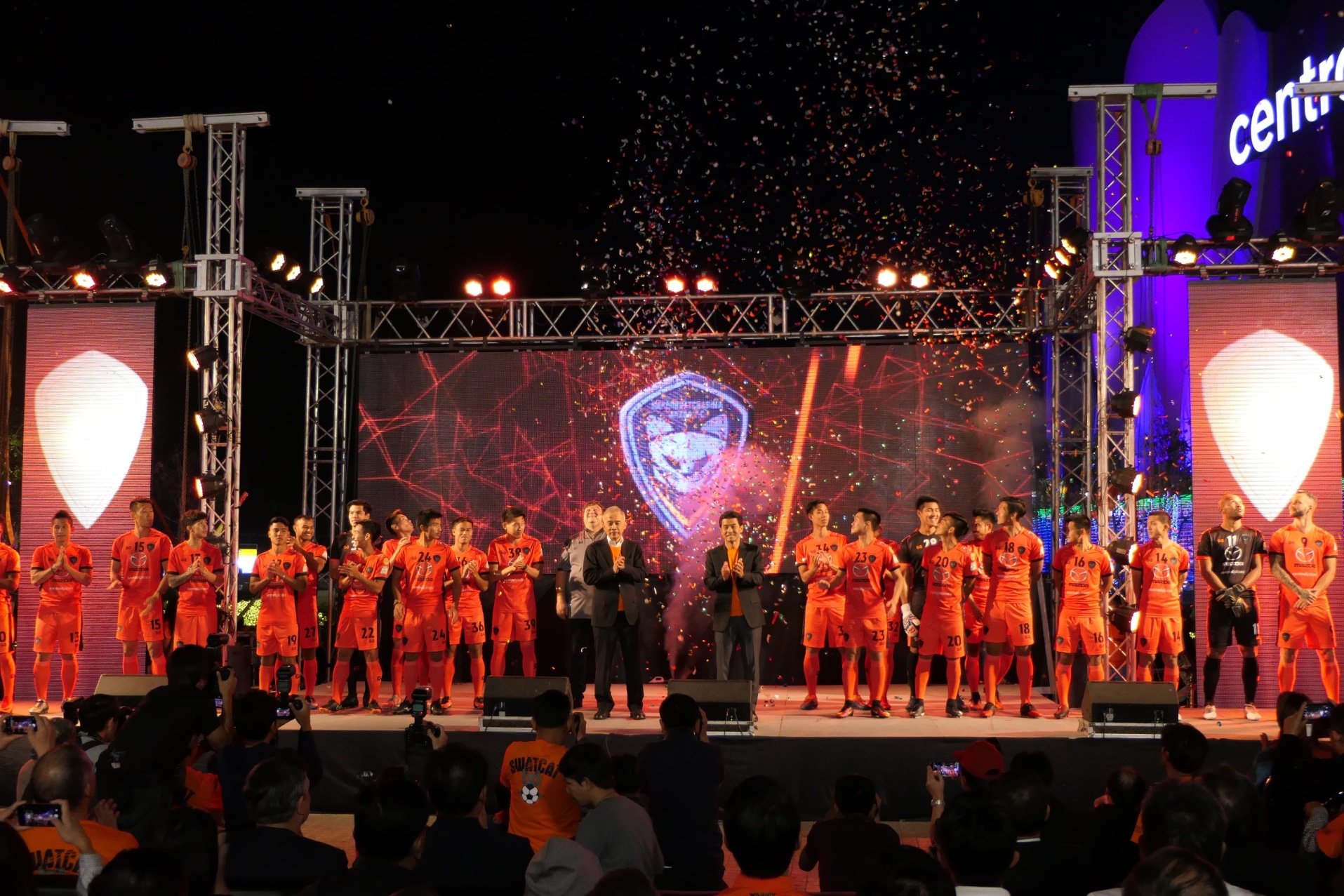 นายเทวัญ ลิปตพัลลภ ประธานสโมสรนครราชสีมา มาสด้า เอฟซี กล่าวว่า ผมมีความยินดีเป็นอย่างยิ่งที่มาสด้า รวมทั้งผู้สนับสนุนทุกราย ยังคงให้การสนับสนุนสโมสรนครราชสีมา มาสด้า เอฟซี อย่างต่อเนื่อง ซึ่งจะช่วยส่งเสริมให้ทีมของเราแข็งแกร่งมากยิ่งขึ้น โดยเฉพาะการสรรหานักเตะฝีเท้าจัดจ้านเข้ามาเสริมทัพ โดยปีนี้ได้นักเตะชื่อดังจากลีกเกาหลีใต้มาเสริมทัพในตำแหน่งของกองหลังเพื่อประสานแดนกลางกับนักเตะต่างชาติอีก 3 คน คือ เปาโล, โดมินิค และพีน่า ในส่วนของนักเตะไทยเราได้ผู้เล่นมาเสริมทีมเพิ่มอีก 3-4 คน โดยเฉพาะผู้เล่นจากทีมชาติไทย หนุ่ย ศราวุฒิ มาสุข รวมถึงผู้รักษาประตูมือเก๋าอย่าง ทศพร ศรีเมือง ที่สำคัญคือเรายังมีความมั่นใจในความสามารถของนักเตะเดิมของเรา เพื่อให้ทีมมีความแข็งแกร่งมากขึ้น และด้วยสปิริตของชาวเมืองโคราชและทุกคนในทีม ผมพร้อมสนับสนุนการทำงานของทีมในทุกด้าน รวมถึงคำแนะนำจากแฟนคลับเพื่อนำมาปรับปรุงและพัฒนาทีม ขอยืนยันว่าเป้าหมายหลักในฤดูกาลนี้ คือ การทำงานอย่างเต็มที่เพื่อให้ทีมก้าวไปสู่ชัยชนะ และก้าวขึ้นติด 1 ใน 6 ให้ได้ เราจะร่วมกันสร้างประวัติศาสตร์กันอีกครั้ง