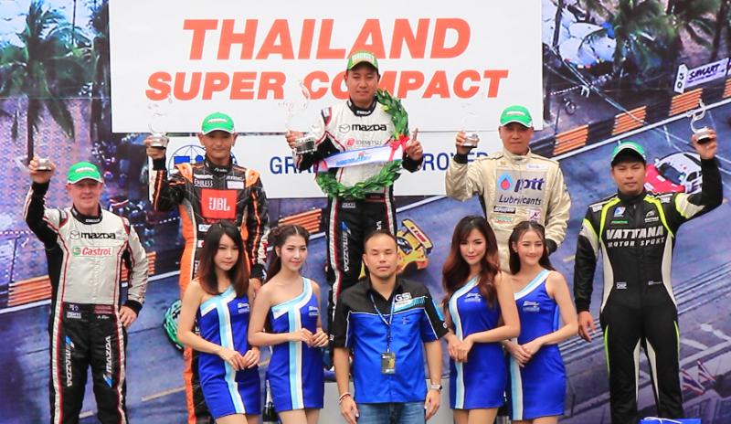 ระเบิดความมันส์กันแล้วสำหรับการแข่งขันรถยนต์ทางเรียบที่ยิ่งใหญ่ที่สุดในประเทศไทย รายการบางแสน กรังด์ปรีซ์ 2017 ที่จัดขึ้นในช่วงสุดสัปดาห์ที่ผ่านมา โดยมีรถมีรถยนต์เข้าร่วมการแข่งขันหลากหลายรายการ และหนึ่งในความมันส์สุดเร้าใจ คือ รุ่น Super Compact ที่มาสด้านำเอารถยนต์มาสด้า2 เครื่องยนต์คลีนดีเซล รุ่นซีดานและแฮตช์แบค ลงประลองความเร็ว สร้างความสนุกสนานท่ามกลางเสียงเชียร์จากสาวกแฟนพันธุ์แท้มอเตอร์สปอร์ตแบบสุดเร้า พร้อมกับคว้าชัยชนะอันดับหนึ่งมาครองได้แบบสวยสดงดงามทั้ง 2 สนาม และเก็บแต้มสะสมประเภททีมมาเป็นอันดับหนึ่ง