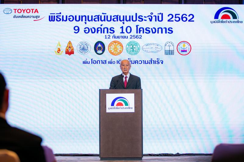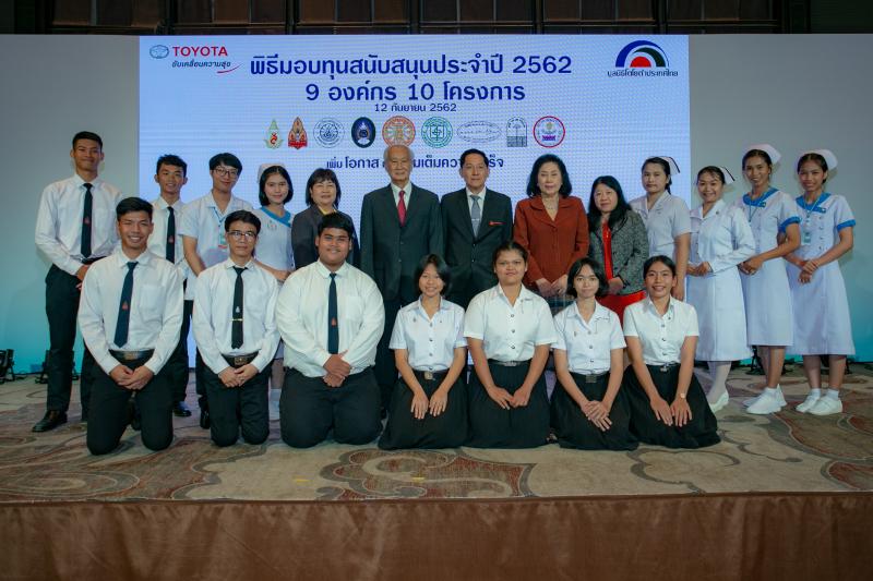 นายประมนต์ สุธีวงศ์ ประธานมูลนิธิโตโยต้าประเทศไทย นายนินนาท ไชยธีรภิญโญ ประธานคณะกรรมการ บริษัท โตโยต้า มอเตอร์ ประเทศไทย จำกัด พร้อมด้วยนายวุฒิกร สุริยะฉันทนานนท์ รองกรรมการผู้จัดการใหญ่ บริษัท โตโยต้า มอเตอร์ ประเทศไทย จำกัด และคณะกรรมการมูลนิธิฯ ร่วมเป็นเกียรติและสักขีพยานในพิธีมอบทุนสนับสนุนประจำปี 2562 แก่สถาบันการศึกษาและองค์กรสาธารณกุศล 9 แห่ง รวมมูลค่า 14.72 ล้านบาท เมื่อวันพฤหัสบดีที่ 12 กันยายน พ.ศ.2562 ณ ห้องแกรนด์บอลรูม โรงแรม ดิ โอกูระ เพรสทีจ