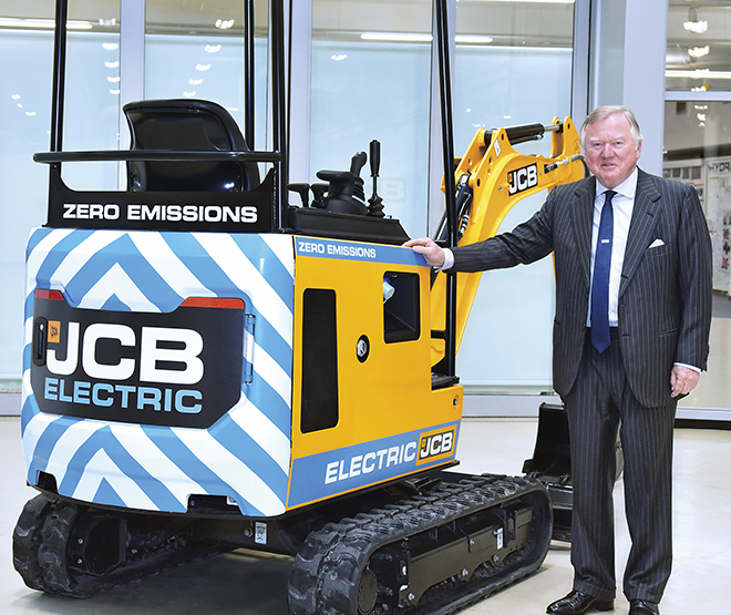 JCB Chairman Lord Bamford who has spearheaded the company’s development of its first ever electric digger.
