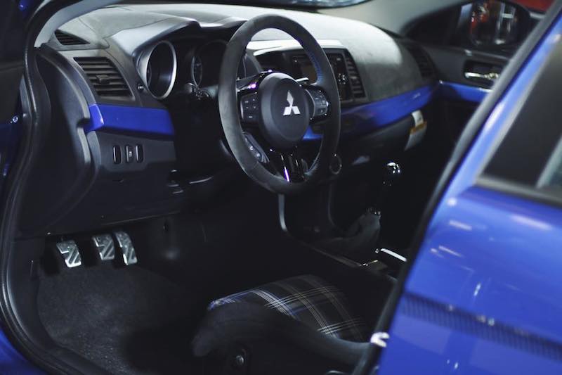 รถคันสีนำ้เงินเข้ม แต่งด้วยกะทะแข่ง TE37 SL เบาะเรคาโร่สีดำ พร้อมอุปกรณ์แต่งทำจากคาร์บอน ไฟเบอร์ และชุดแต่งจาก เจอาร์ซี JRZ เก็บเอามาฝากเป็นการอำลา อีโวลูชั่น อย่างเป็นทางการอีกครั้ง