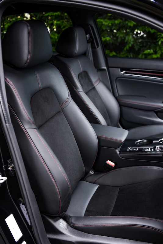 และล้ออัลลอยดีไซน์ใหม่ ขนาด 18 นิ้ว ภายในห้องโดยสารสะท้อนความสปอร์ตพรีเมียม ด้วยเบาะหนังกลับและวัสดุสังเคราะห์ตกแต่งด้วยด้ายสีแดง