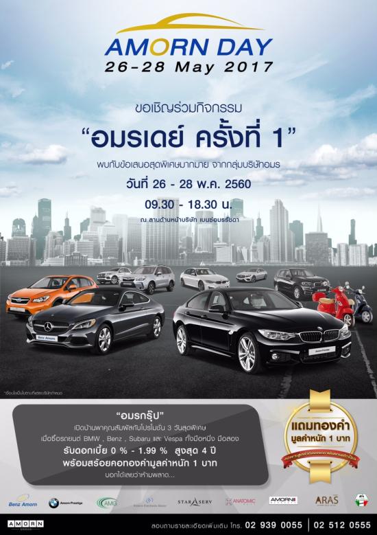 อมรกรุ๊ป จัดเต็มไตรมาส 2 อัดแคมเปญ 7 ธุรกิจในเครือ ภายใต้กิจกรรม “อมรเดย์” 3 วันรวด ตั้งแต่วันที่ 26-28 พฤษภาคมนี้ หวังกระตุ้นยอดขายปีนี้แตะ 2,000 ล้านบาท ถือเป็นการประเดิมคืนกำไรให้ลูกค้าตั้งแต่เริ่มไตรมาส 2 ของปี เมื่อซื้อรถใหม่ในเครือ อย่างบีเอ็มดับเบิลยู ,ซูบารุ แจกทองคำหนัก 1 บาททันที พร้อมดอกเบี้ย 0% นาน 48 เดือน ส่วนรถเมอร์เซเดส-เบนซ์, บีเอ็มดับเบิลยูมือสอง ที่งานนี้เลือกมาเฉพาะสภาพนางฟ้า ราคาโดนๆ แถมแจกทองคำหนัก 1 บาทเช่นกัน เหนืออื่นใดธุรกิจบริการหลังการขาย, อินชัวร์โบรกเกอร์ และรถจักรยานยนต์ เวสป้า มอบส่วนลด พร้อมของแถมอีกเพียบ