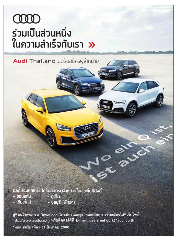 ออดี้ ประเทศไทย ขยายโชว์รูมและศูนย์บริการใน 4 ภาค เปิดรับสมัครดีลเลอร์ 1-31 สิงหาคม
