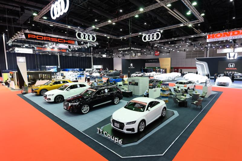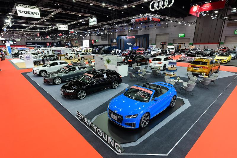 ภายในงาน Bangkok International Grand Motor Sale 2019 จัดขึ้นระหว่างวันที่ 16-25 สิงหาคม ที่ไบเทค บางนา อาวดี้นำยนตกรรมมาจัดแสดงทั้งหมดรวม 8 รุ่น โดยแต่ละรุ่นล้วนมีเรื่องราวและสมรรถนะที่โดดเด่นโดยไฮไลต์ครั้งนี้ คือ The new Audi TT Roadster 45 TFSI quattro S line ที่หลายคนรอคอย ด้วยหลังคาแบบซอฟท์ท็อปสีดำที่ใช้เวลาการเปิด-ปิด เพียง 10 วินาที ตอบทุกไลฟ์สไตล์ชีวิตแบบอิสระ อีกทั้งให้แรงบันดาลใจและพลังขับเคลื่อนที่เหนือกว่าด้วยเครื่องยนต์เบนซิน 4 สูบ 16 วาล์ว DOHC ไดเรคอินเจคชั่น เทอร์โบชาร์จ ขนาด 1,984 ซีซี ตอบสนองการขับขี่ที่ร้อนแรงด้วยกำลังสูงสุด 230 แรงม้า และที่สำคัญมาพร้อมกับระบบขับเคลื่อน 4 ล้อ หรือ quattro พร้อมช่วงล่างแบบสปอร์ต ให้อัตราเร่ง 0-100 กม./ชม. ในเวลาเพียง 5.6 วินาที และทำความเร็วสูงสุดได้ 250 กม./ชม. ความสะดวกในการใช้งาน ด้วยพื้นที่เก็บสัมภาระถึง 280 ลิตร มาพร้อมสีใหม่ล่าสุด Turbo Blue กับราคาที่นับว่าพิเศษมากเพียง 3,599,000 บาท