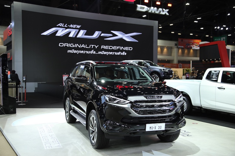 - (ALL-NEW ISUZU MU-X) ยนตรกรรมอเนกประสงค์ รุ่นใหม่หมด โดดเด่นด้วยดีไซน์รูปลักษณ์ที่สมบูรณ์แบบตั้งแต่ภายนอกจรดภายใน ก้าวล้ำสู่ อีกขั้นแห่งความมั่นใจที่ครบครันกว่า ด้วยเทคโนโลยีเพื่อความปลอดภัยล้ำหน้าล่าสุด ISUZU MATRIX SAFETY INTELLIGENCE ให้ทุกระบบทำงานร่วมกันเป็นหนึ่งเดียวอย่างมีประสิทธิภาพล้ำหน้าไปอีกขั้นกับเทคโนโลยี ADAS (Advanced Driver Assistance Systems) ระบบช่วยเหลือผู้ขับขี่ที่มาพร้อมนวัตกรรมกล้องหน้าคู่ 3D Imaging Stereo Camera ที่แม่นยำยิ่งกว่า และอีกขั้นกับความมั่นใจในเสถียรภาพการขับขี่สมบูรณ์แบบด้วยโครงสร้างแพลตฟอร์มและช่วงล่างใหม่ที่ออกแบบตามแนวคิด ISUZU Symmetric Mobility พร้อมเติมเต็มสุนทรียภาพแห่งการเดินทางด้วยเทคโนโลยีอำนวยความสะดวกสุดล้ำตลอดคัน ตอกย้ำสมรรถนะเหนือชั้นด้วยขุมพลังอันเป็นเอกลักษณ์ของอีซูซุทั้งเครื่องยนต์ 3.0 Ddi Blue Power และ 1.9 Ddi Blue Power Gen 2 ล่าสุด ซึ่งมีให้เลือก 4 รุ่น 4 สไตล์ ได้แก่ Ultimate, Elegant, Luxury และ Active โดยงานนี้นำมาให้ชมรวม 3 คัน