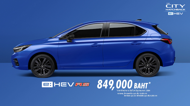 24 มิถุนายน 2564 บริษัท ฮอนด้า ออโตโมบิล (ประเทศไทย) จำกัด ตอกย้ำตำแหน่งผู้บุกเบิกและผู้นำเซกเมนต์ซิตี้คาร์ในประเทศไทย เปิดตัว ฮอนด้า ซิตี้ แฮทช์แบ็ก อี:เอชอีวี ใหม่ ครั้งแรกในโลก ยนตรกรรมซิตี้คาร์แฮทช์แบ็กฟูลไฮบริด ที่จะมาเสริมความแข็งแกร่งของไลน์อัปไฮบริดของฮอนด้าไปอีกขั้น และเติมเต็มความสมบูรณ์แบบของ “เดอะ ซิตี้ ซีรีส์” (The City Series) มาพร้อมจุดเด่นเทคโนโลยี Full Hybrid อันทรงพลัง กับระบบขับเคลื่อน Sport Hybrid i-MMD มั่นใจในทุกการขับขี่ด้วยเทคโนโลยีความปลอดภัยอัจฉริยะ “ฮอนด้า เซนส์ซิ่ง” (Honda SENSING) พร้อมด้วยเอกลักษณ์ความอเนกประสงค์กับเบาะนั่ง อัลตราซีท (ULTR) ครบครันด้วยเทคโนโลยีเพื่อความปลอดภัยและฟังก์ชันการใช้งานระดับพรีเมียม ดีไซน์สปอร์ตทั้งภายนอกและภายใน ด้วยดีไซน์สไตล์ RS รอบคันเสริมเอกลักษณ์ยนตรกรรมไฮบริดด้วยโลโก้ H Mark ตกแต่งกรอบสีฟ้า และโลโก้ e:HEVพร้อมแนะนำสีใหม่สุดเอกซ์คลูซีฟกับสีน้ำเงินบริลเลียนท์ สปอร์ตตี้ (เมทัลลิก) เสริมความมั่นใจในการใช้งานด้วยการรับประกันอายุการใช้งานแบตเตอรี่ไฮบริดถึง 10 ปี และรับประกันระบบไฮบริดทั้งระบบ 5 ปี ไม่จำกัดระยะทาง* อีกทั้งฟรีค่าแรงในการเช็กระยะเป็นเวลา 5ปี หรือ 100,000 กิโลเมตร* (อย่างใดอย่างหนึ่งถึงก่อน) คุ้มค่าเกินคลาส ด้วยราคาจำหน่ายรุ่น e:HEV RS 849,000 บาท